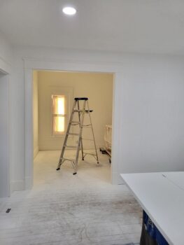 يشمل العمل دهان الجدران وتركيب الأرضيات والأسقف الجبسية.
